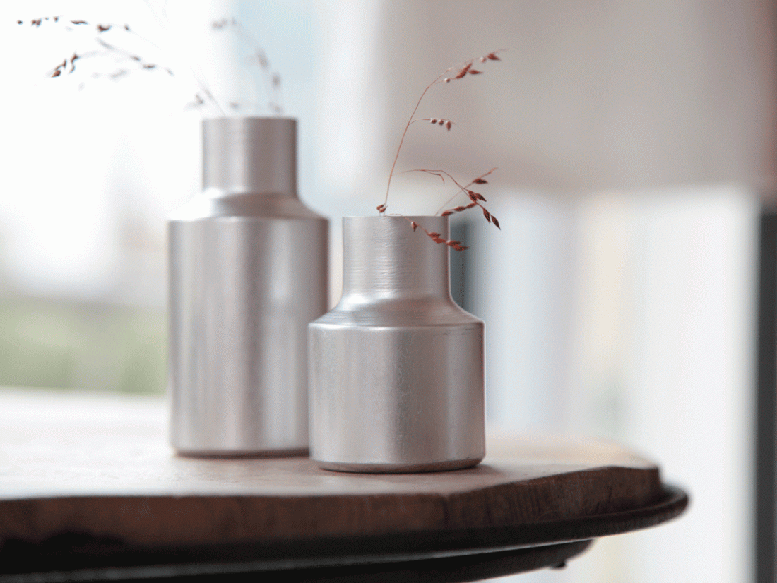 Nachhaltiges Vasen-Set aus Aluminium – jedes Stück ein Unikat