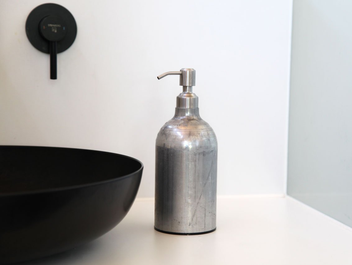 Der innovative Spülmittel-Spender FIRE aus recycelten Gasflaschen bringt im trendigen Design Stil und Funktionalität in jede Küche. Der dekorative Spender in 9 schönen Farben kann individuell mit gefüllt werden. Durch einfaches Pumpen der Flasche wird die gewünschte Menge Spülmittel bequem dosiert. Auch im Badezimmer macht der Spender eine gute Figur, denn auch Flüssigseife und Duschgel lassen sich mit dem cleveren Spender kinderleicht dosieren. Der hochwertige Spender für Spülmittel, Seife, Duschgel und Lotion wird aus recycelten Gasflaschen in Bayern handgefertigt. Er hält die gewünschte Flüssigkeit stets griffbereit in Küche, Bad und Gäste-WC.