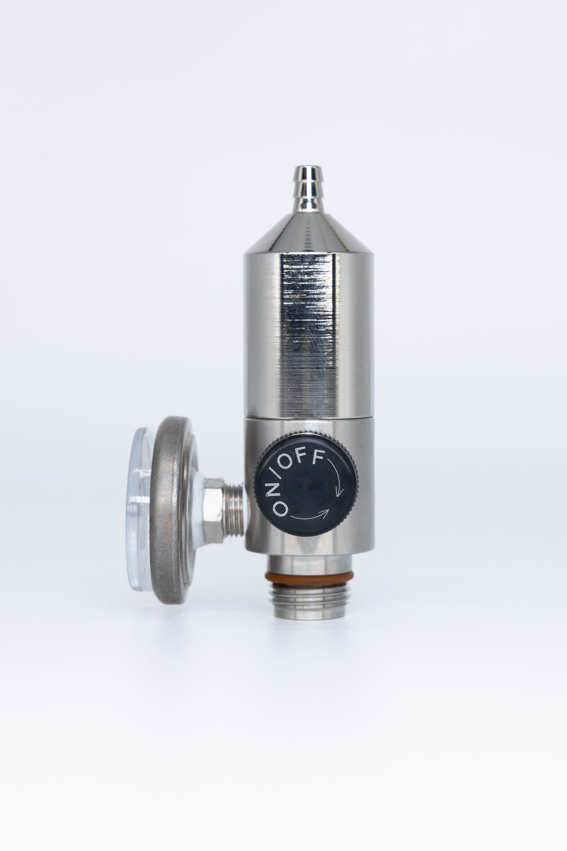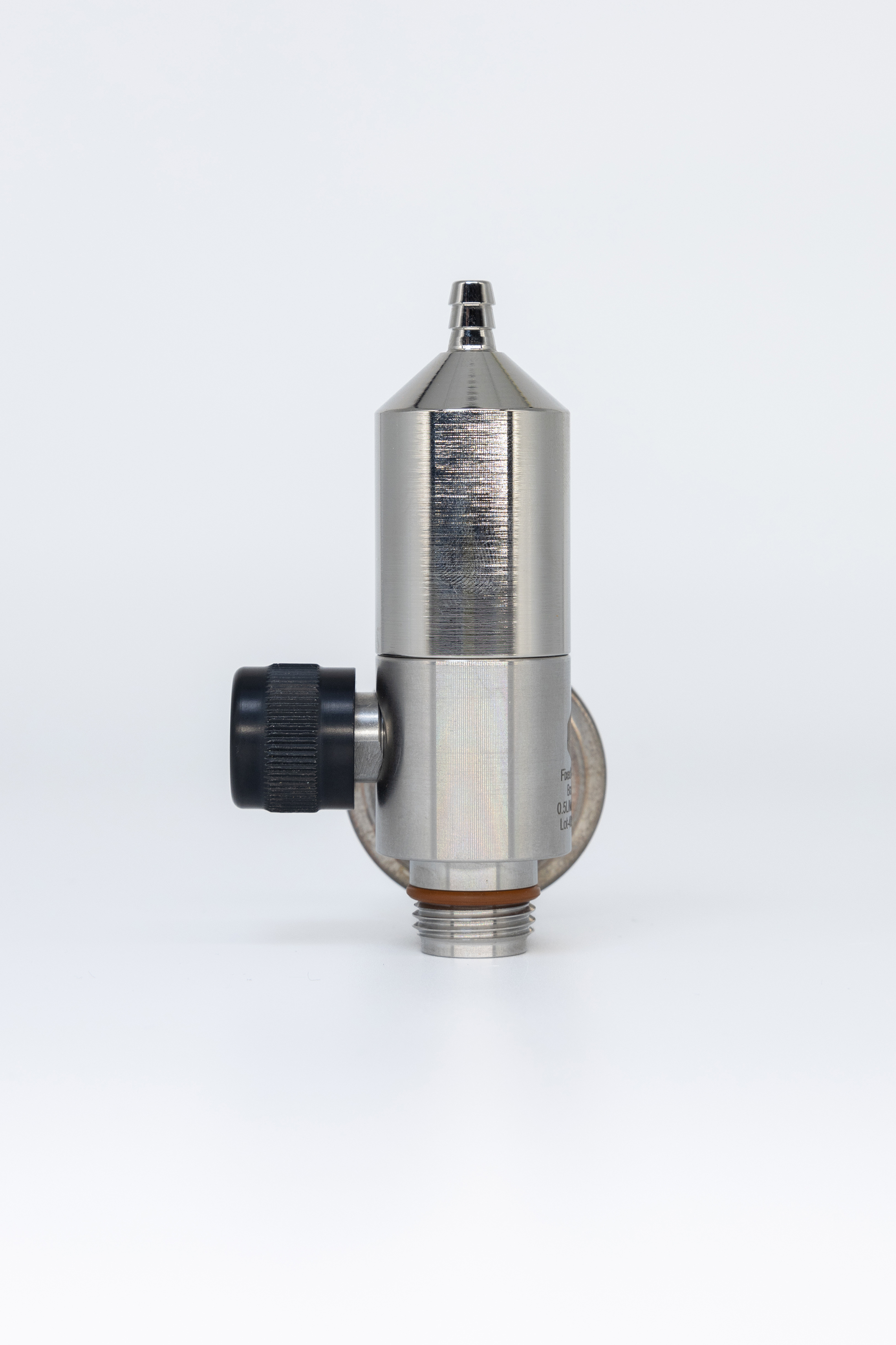 Der AIG-100 Entnahmeregler bzw. Druckminderer ist exakt auf unsere ALLCAN-Prüfgasflaschen ausgelegt. Es handelt sich um einen einstufigen Entnahmeregler mit 1/4-Zoll-Anschluss, welcher für unsere 34 l, 60 l und 112 l Gasflaschen passend ist. Der Gasfluss ist fest eingestellt und jeweils in den Varianten mit 0,5 l/min | 1,0 l/min | 2,5 l/min | 3,0 l / min bei uns im Onlineshop erhältlich. Auch eine Druckanzeige ist vorhanden. Der Druckminderer ist unter anderem in der vernickelten Messing-Variante erhältlich, die für den Einsatz mit nicht-reaktiven Gase geeignet ist. Das Edelstahl-Modell ist hingegen ideal für reaktive beziehungsweise hoch-reaktive Gase. Benötigen Sie einen Druckminderer mit variabel einstellbarer Durchflussrate oder mit 1/6-Zoll-Anschluss mit zusätzlich angebrachtem Flowmeter? Dann ist der AIG-105 Entnahmeregler die richtige Wahl für Sie.